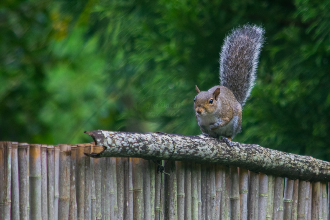 A Squirrel On A The eastern gray squirrel (Sciurus carolinensis), also known as the grey squirrel depending on region, is a tree squirrel in the genus Sciurus. It is native to eastern North America, where it is the most prodigious and ecologically essential natural forest regenerator.Bamboo Fence