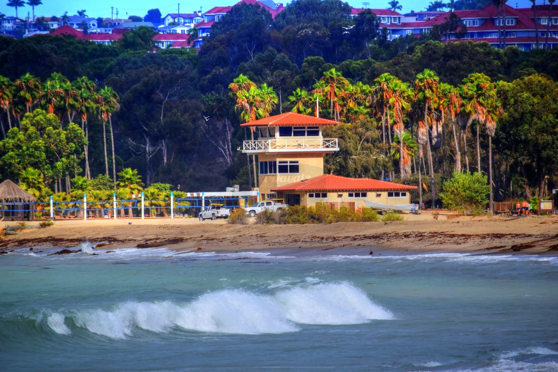 A lifeguard station on the shores of the pacific ocean.