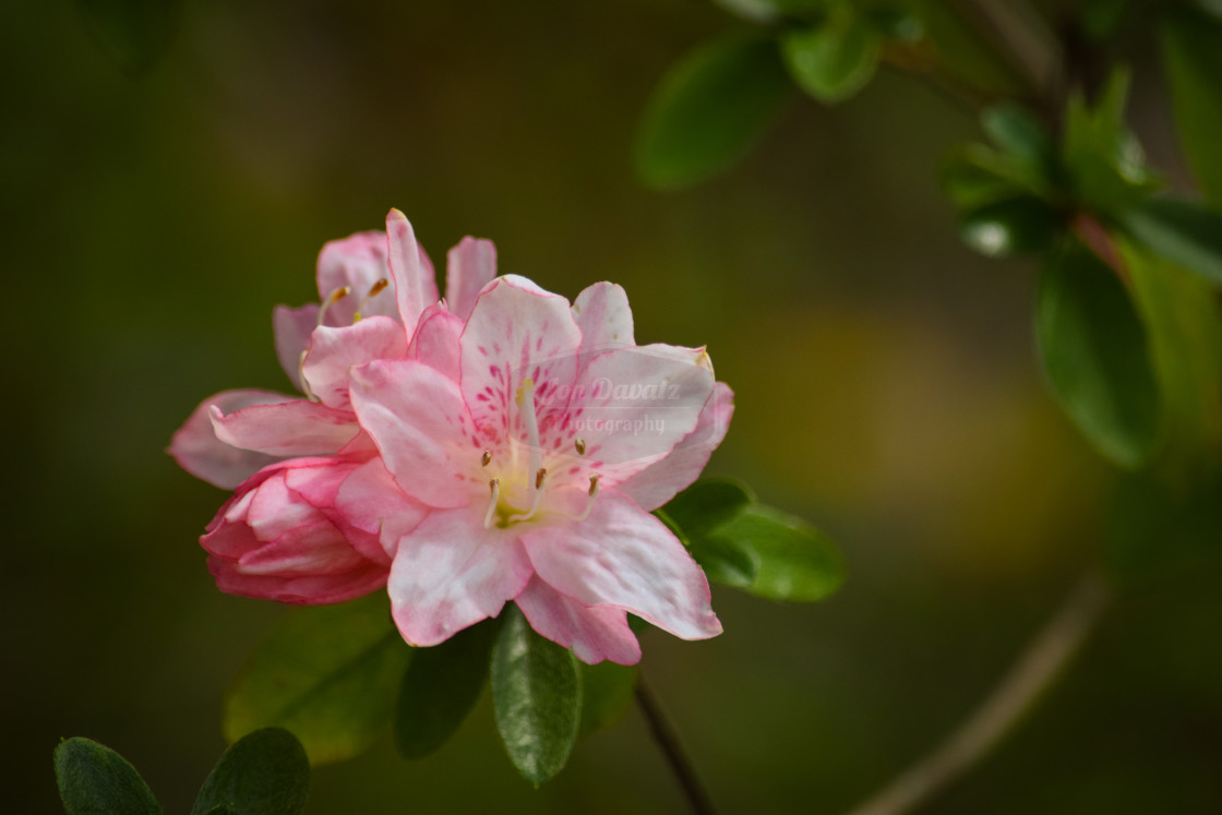 Azaleas are flowering shrubs in the genus Rhododendron, particularly the former sections Tsutsuji (evergreen) and Pentanthera (deciduous). Azaleas bloom in spring, their flowers often lasting several weeks. Shade tolerant, they prefer living near or under trees. They are part of the family Ericaceae.