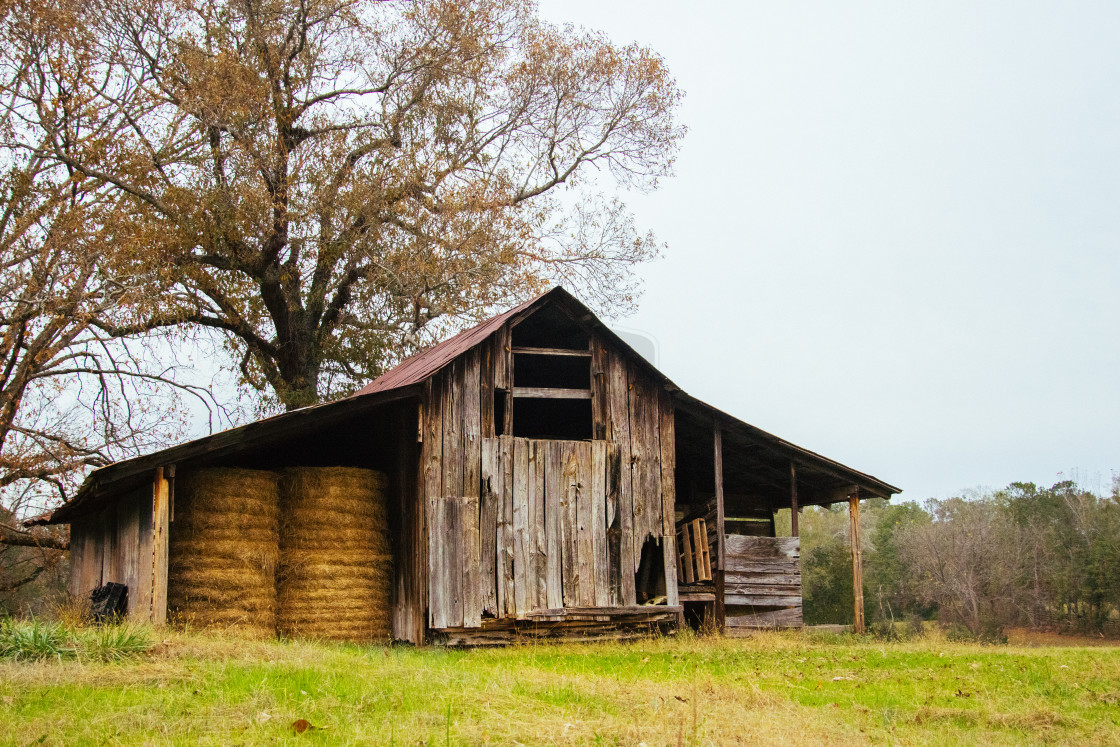 An old barn in rural Georgia used to store hay and straw to feed the horses