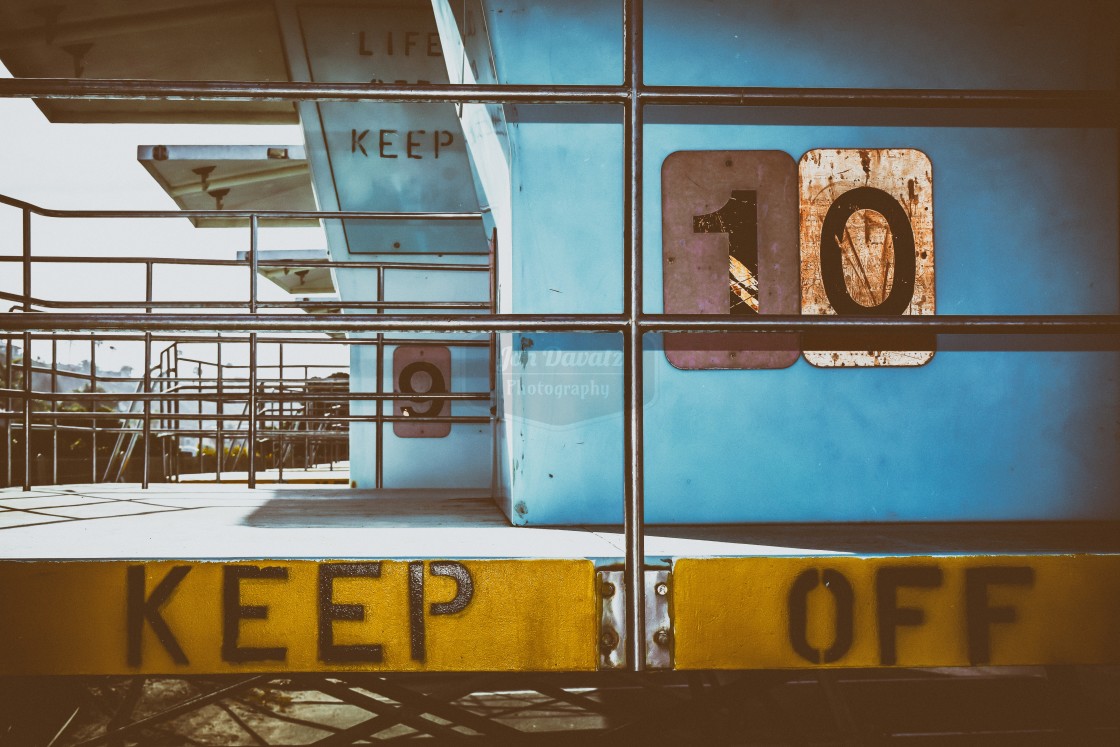 A collection of lifeguard towers waiting to be placed for the summer season. Keep Off.